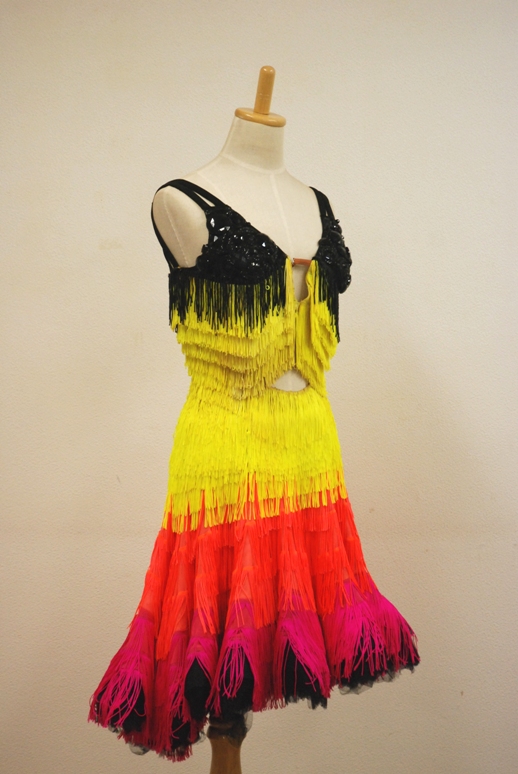 フロアで目を引く、色鮮やかなドレスです。