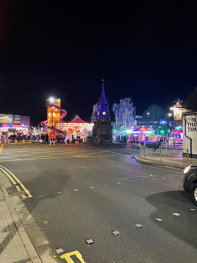 車で20分くらい行くとストラトフォードアポンエイボンという、シェイクスピアの生まれた街があり、そこではクリスマスのお祭りをやっていました。