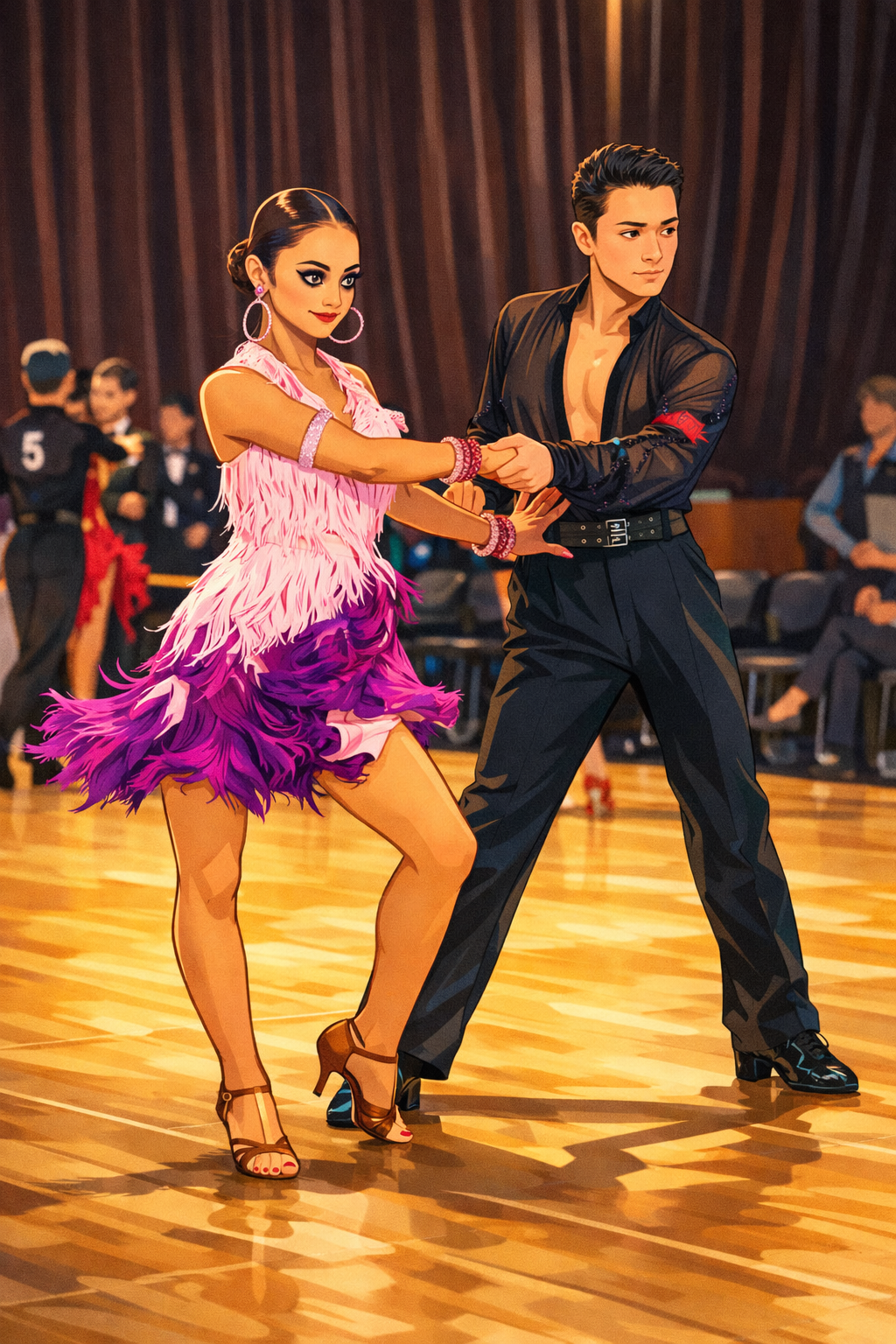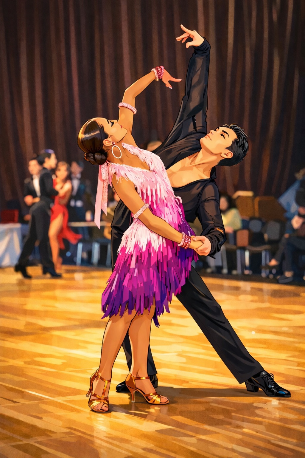 全関東選手権で私たちが踊っている写真をAIに見せたら、イラスト化してくれました。