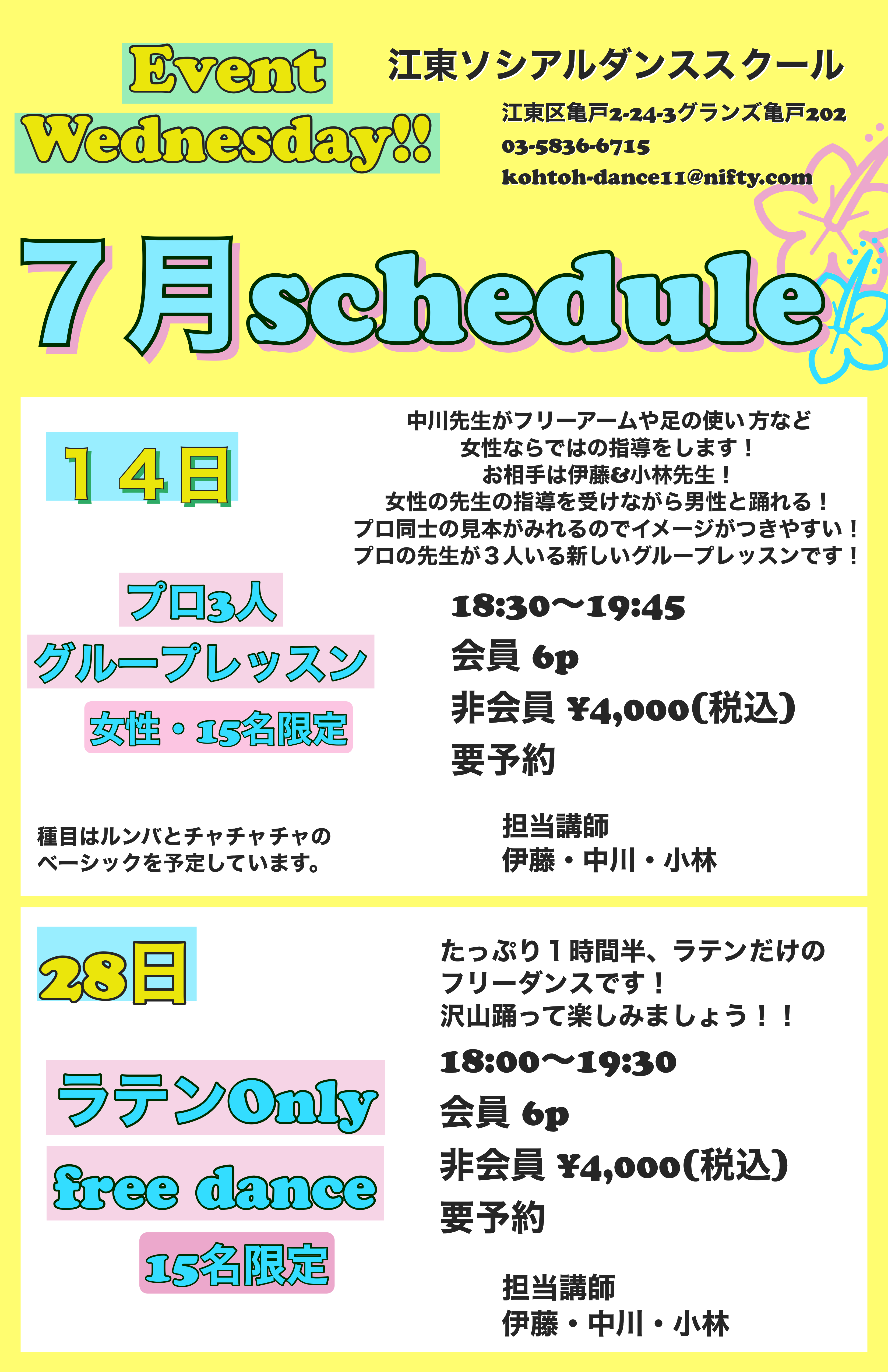 今月の水曜日イベントスケジュールです!↓↓