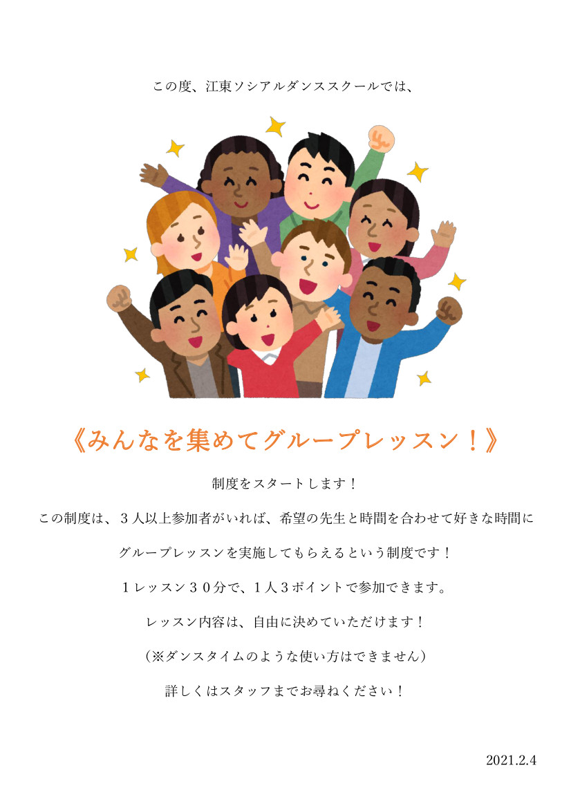 グループレッスンのお知らせ☆