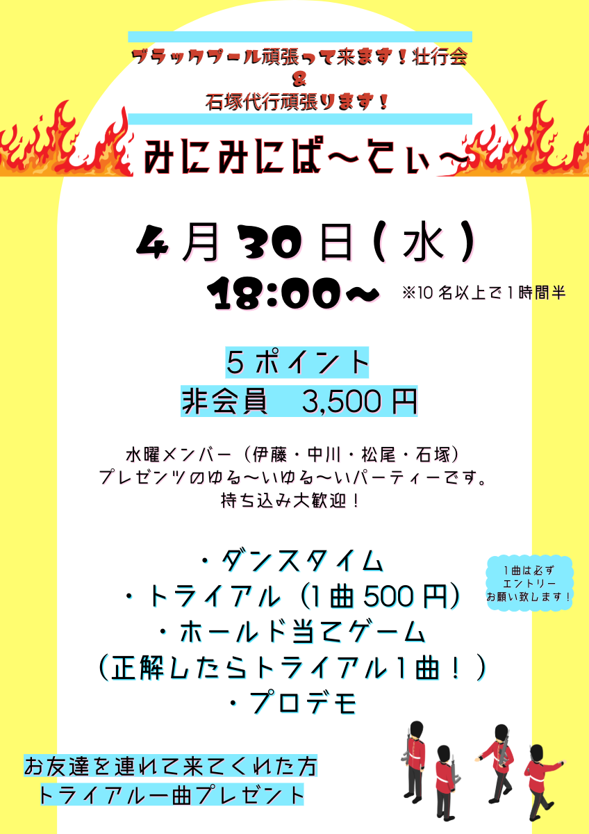 次の試合は海外となります。私たちはブラックプールへ挑戦する予定でいます(ブラックプールへの挑戦は初めてです)。5/10(土)から5/31(土)まで、行かせて頂く予定でいます。修行、がんばります。