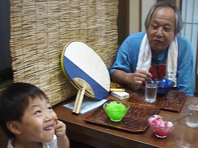 ↓大好きな祖父とのかき氷 小林少年美味しくて調子に乗ってます笑笑