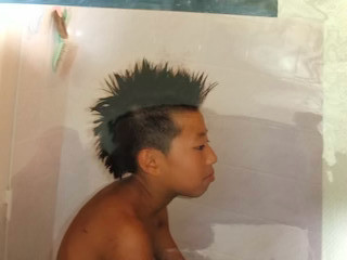 その途中にコーチが面白がってモヒカンにしていました。